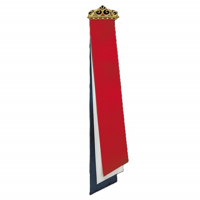 17. mai sløyfe med filigran i forgylt sølv og 28 cm lange sløyfeband i raudt, kvitt og blått. Den kan brukast igjen, år etter år, og er ei fin gåve til store og små.