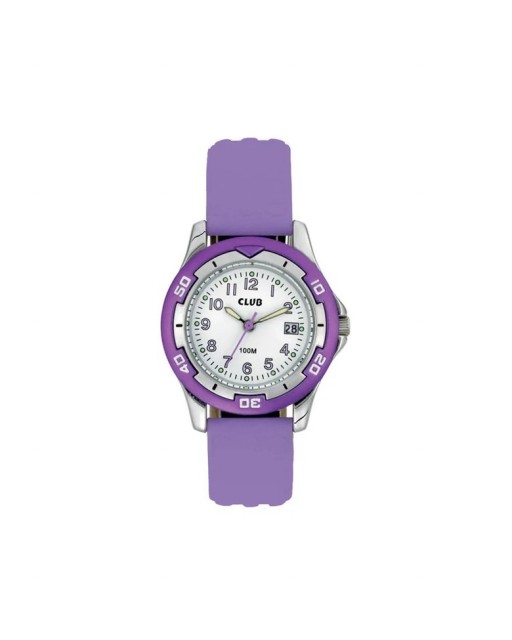 Lekker barneklokke med en slitesterk silikonrem i lilla, sølvfarget urkasse og hvit urskive. Klokken er vanntett inntil 100 meter og tåler at dusjes og bades med, perfekte for aktive barn.