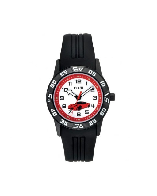 Tøff barneklokke med en slitesterk sort silikonrem og urskive med røde detaljer og bil motiv. Klokken er vanntett inntil 100 meter og tåler at dusjes og bades med, perfekte for aktive barn.