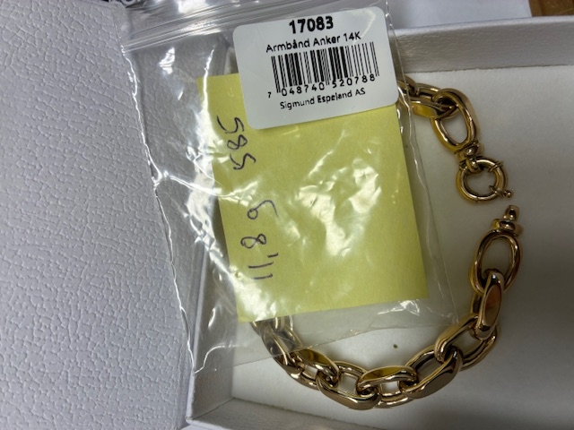 Armbånd "Anker" i 14K gult gull 19 CM Artikkelnr.: 17083 Metall: 585 Gult gull Lengde: 19 CM Bredde: 8,1 MM Høyde: 0.81 CM NOK28 604,00 Førpris:NOK35 755,00 Rabatt -20% inkl. mva. Kjøp Ønskeliste Del dette Produktinfo Produktanmeldelser (0) Veil arbeidspris: Kr 22715,00 Medgått gull gram: 13,8 Skriv en produktanmeldelse og del dine erfaringer med dette produktet med andre kunder. Email Navn Din vurdering? 1 star 2 star 3 star 4 star 5 star 6 star Oppgi en tittel for anmeldelsen din Skriv inn produktanmeldelsen i feltet under